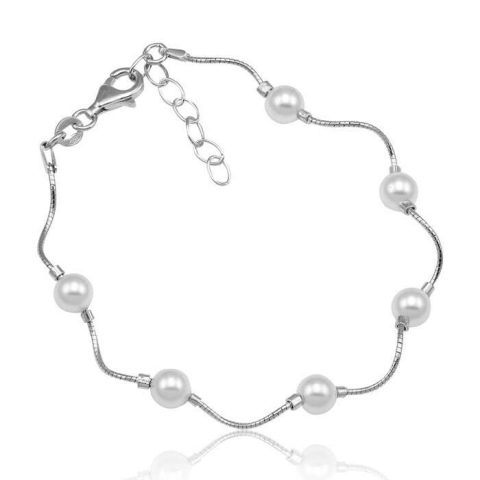 1 kép Toscana Ezüst Hullámos Karkötő Gyöngyökkel - Állítható