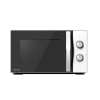 Praktikus TOSHIBA mikrohullámú sütő elegáns fehér színben kínál mechanikus vezérlést, 35 perces időzítőt és 5 teljesítményszintet a gyors melegítéshez és idő vagy tömeg szerinti kiolvasztáshoz. Nem hiányzik a LED világítás, a stabil, 255 mm-es üveg forgótányér és a csúszásgátló talp a biztonságos használathoz.Élvezze a megbízható és intuitív melegítést a TOSHIBA mikrohullámú sütővel. Az egyszerű mechanikus vezérlés két forgógombbal, a legfelj