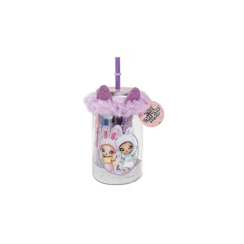 NaNaNa meglepetés álló pohár, a belsejében írósezettel. Scrunchie-val díszített, újrafelhasználható pohár.