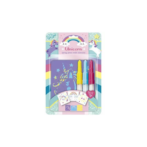 Fess egyszarvú képeket festékszórós tollakkal! A Totum Unikornis festékszóró toll készlet rózsaszín, sárga és kék tollakat, sablonokat tartalmaz, amikkel különleges képeket tudsz megalkotni. A tollak színes végét a papír felé kell tartani, és fújj bele a másik végébe, hogy a festék a papírra jusson. Használd a sablonokat, és egyedi, egyszarvú lovakat ábrázoló képek fognak születni! Az Unikornis festékszóró toll készlet csomagolási méretei: 18 x 3 x 27 c