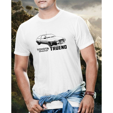 Autós pólók, Toyota Sprinter Trueno AE86 póló a különleges pólók és a ritka autók kedvelőinek. Egy igazi retro ritkaság egy kényelmes pamut pólón, ajándék férfiaknak születésnapra, névnapra minden méretben. Kiváló minőségű férfi és női pólók, amelyek