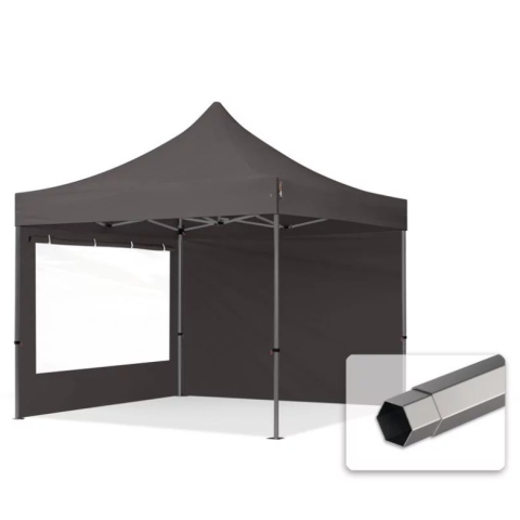1 kép TP 3x3m összecsukható 750N acél vázas pavilon, 2 db oldalfallal - sötétszürke