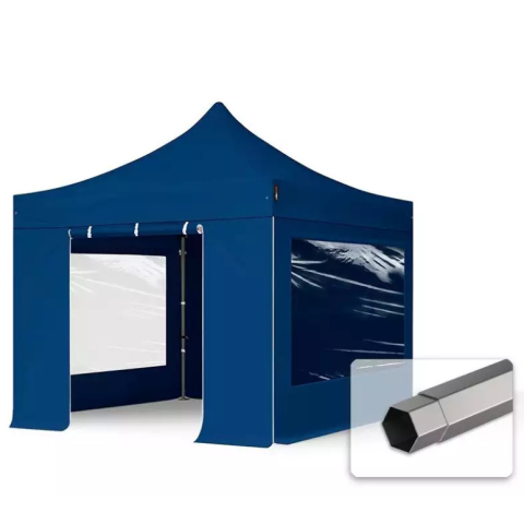 1 kép TP 3x3m összecsukható 750N acél vázas pavilon, 4 db oldalfallal - sötétkék