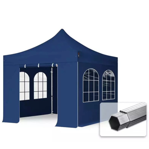 1 kép TP 3x3m összecsukható 800N alumínium pavilon, 4 db oldalfallal, hagyományos ablak - kék