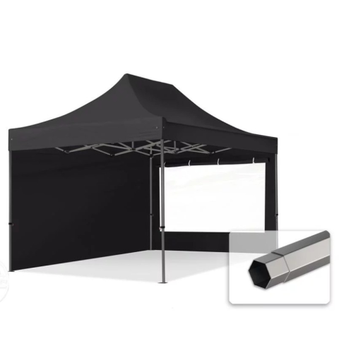 Teljes TP 3x4,5m összecsukható 750N acél vázas pavilon, 2 db oldalfallal - fekete termékleírás