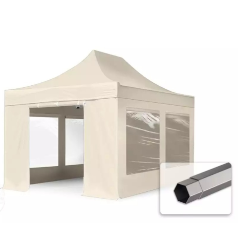 1 kép TP 3x4,5m összecsukható 750N acél vázas pavilon, 4 db oldalfallal - krém
