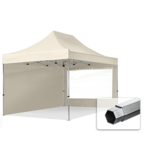 Teljes TP 3x4,5m összecsukható 800N alumínium pavilon, 2 db oldalfallal - krém termékleírás
