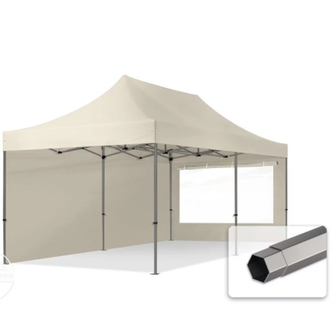 1 kép TP 3x6m összecsukható 750N acél vázas pavilon, 2 db oldalfallal - krém