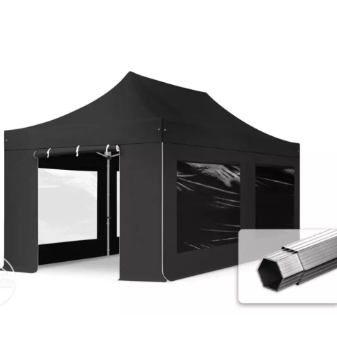 Teljes TP 3x6m összecsukható 800N alumínium pavilon, 4 db oldalfallal - fekete termékleírás