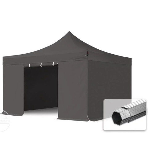 1 kép TP 4x4m összecsukható 800N alumínium pavilon, 4 db oldalfallal, ablak nélkül - sötétszürke