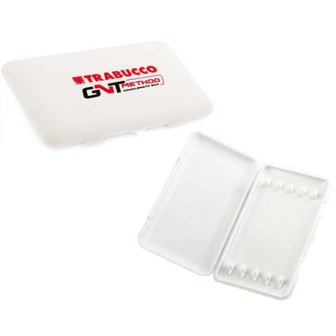 A method technikához méretezett előketartó. A leggyakrabban használt hosszúságú előkéket tudjuk tárolni nagy biztonsággal, mindig egyforma méretben. A fehér szín megakadályozza a legnagyobb hőségben is , hogy túlságosan felmelegedjen