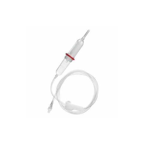 Transzfúziós szerelék 18 G tűvel. Steril, egyszer használatos PVC szerelék, luer-lock csatlakozással és latex közdarabbal. A vezetőcső hossza: 150 cm .