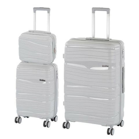 TraveLux Voyager IX gurulós bőrönd szett TraveLux Voyager IX gurulós bőröndszett – Három méret, tökéletes utazási szabadságTípus: 3 darabos keményfedeles bőröndszettTartalom és méretek: – Kézi bőrönd: 26 × 31 × 17 cm | 11 liter | 0,77 kg – Kabinbőrönd: