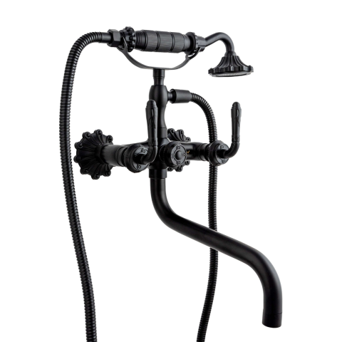 1 kép TRENDY'S Fürdőkád csaptelep, hosszú mobil cső, matt fekete, hímzéssel