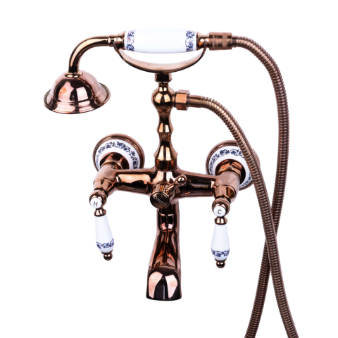 1 kép TRENDY'S kád csaptelep, falra szerelhető, rózsás, kerámia hímzés mintával