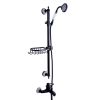 1 kép TRENDY'S kád csaptelep, falra szerelhető, zuhanykészlettel, matt fekete kerámia hímzéssel