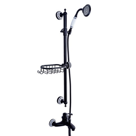TRENDY'S Falra Szerelhető Kádcsaptelep Zuhanygarnitúrával - Matt Fekete, Kerámia Díszítéssel 🚿 Elegáns és funkcionális TRENDY'S kádcsaptelep, amely stílust és kényelmet visz fürdőszobájába. A matt fekete felület és a finom kerámia díszítés modern me...