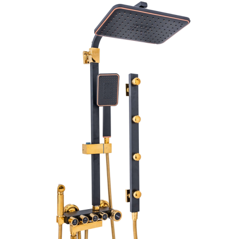 1 kép TRENDY S, Hidromasszázsos zuhanyoszlop, öt funkció, integrált bidé funkció, fekete-arany