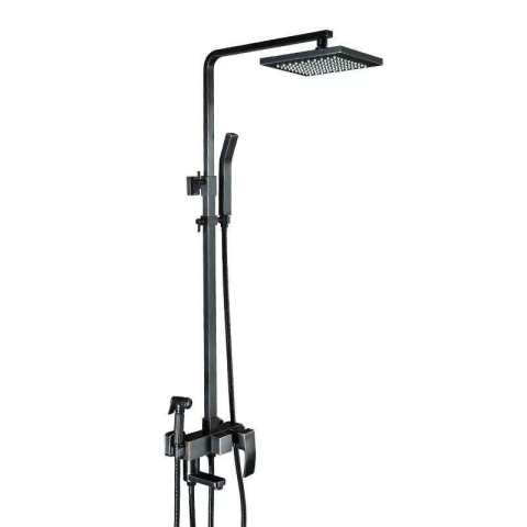 Trendi Zuhanyoszlop 4 Funkcióval - Antik Fekete Design 🚿 Ez a stílusos, matt fekete zuhanyoszlop négy praktikus funkcióval teszi kényelmesebbé a fürdőszobai élményt. Kiváló minőségű szaniterrézből készült, tartós és elegáns megjelenést biztosítva. F...