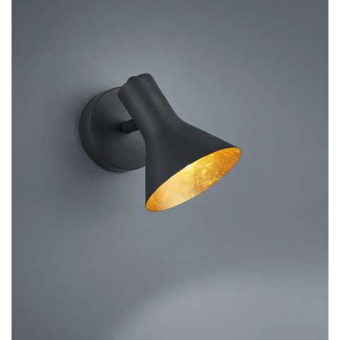 A fekete és az arany kontrasztos színkombinációja teszi igazi figyelemfelkeltő látvánnyá a klasszikus Nina 1 izzós spotot. Ez a gyönyörű megjelenés és az ernyő belső üregének aranyszínű árnyalata hangulatos fényt sugároz, és így kellemes légkört teremt a helyiségekben. Egy darab E14 foglalattal legfeljebb 40 watt teljesítményre méretezték. Az izzó külön kapható.