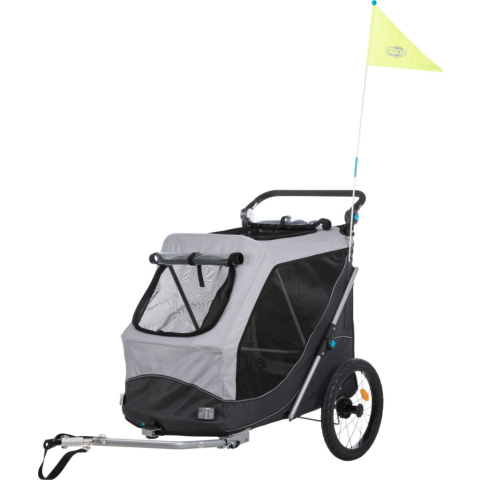Kényelmes és biztonságos szállító utánfutó kutyáknak kerékpározáshoz. Strapabíró, vízlepergető anyagból, nagy szellőző ablakokkal és összecsukható kivitelben. Ideális városi és vidéki túrákhoz egyaránt. A Trixie 12798 bicikli utánfutó ideális választás