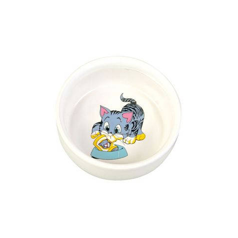 1 kép Trixie Ceramic Bowl – kerámia tál (fehér, mintás) macskák részére (0,3l /Ø11cm)