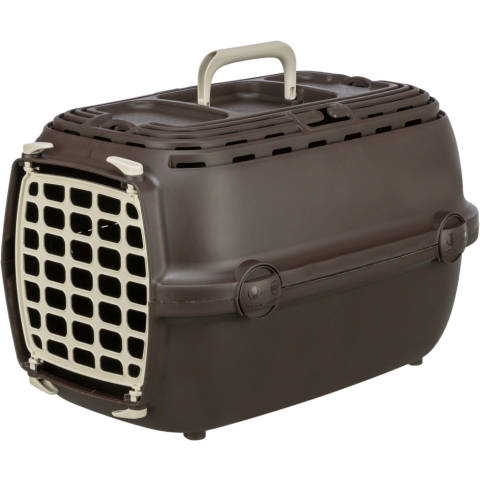 A Trixie Relax szállítóbox XS méretben (32×30×48 cm) kistestű kutyák és macskák biztonságos szállítására alkalmas. Strapabíró műanyagból készült, szellőzőnyílásokkal és rácsos ajtóval. Praktikus fogantyúval, barna színben kapható. A Trixie Relax szállí
