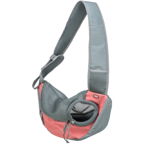 A Trixie Sling Front szállítótáska kis testű kutyák számára kényelmes és biztonságos szállítást nyújt. Széles vállpánttal, beépített rövid pórázzal és hálós szellőzőkkel készült. Pink színben, 50×25×18 cm méretben kapható. A Trixie Sling Front táska eg