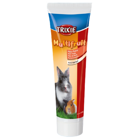 Trixie Szőroldó Paszta Malt rágcsálóknak Magas rosttartalmú szőroldó paszta kisállatok részére, erdei gyümölcsös és multivitamin ízesítéssel. A javított recepturával készülő malátás paszta természetes tisztaságú, aromadús malátát, különleges növényi olajat és gyümölcskivonatot tartalmaz. A különféle ballaszt anyagok, valamint azoknak a termékben fennálló szokatlanul magas tartalma segíti a táplálék feldolgozását és a lenyelt szőrzet és emészt