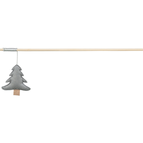 Ünnepi hangulatú macskajáték – fa pálcán lebegő karácsonyfa figura 48 cm-es hosszban, hogy kedvenced is részese legyen az ünnepi készülődésnek. Képzeld el, ahogy az otthon karácsonyi fényei gyengén pislákolnak, a kandalló előtt halk piepogások hallatsz