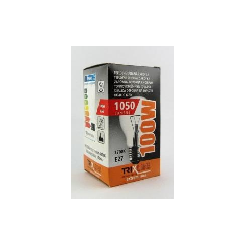 Trixline Speciális normál izzó E27/100W RNE27/100W - Hõálló - Speciális izzó szélsõséges hõmérsékletekre - Ipari használatra - Ideális hõmérséklet: -30 ºC és 70 ºC között - Európai Bizottság EU 2015/1428 rendelete szerint - 1050 lumen - 100 W - Foglalat: E27