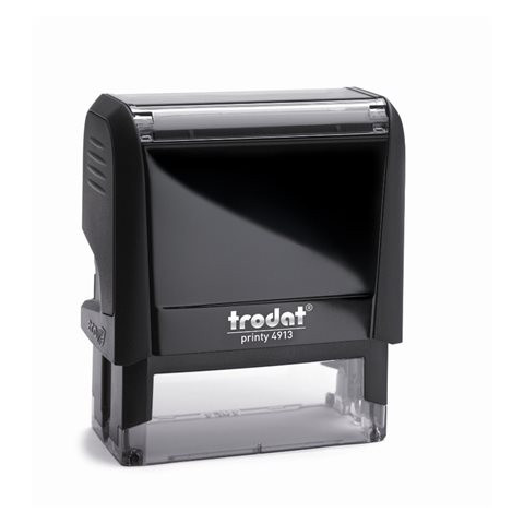 Bélyegző, TRODAT Printy 4913, kék párnával önfestékező rendszer műanyag ház házszín nem választható lenyomat méret: 58x22 mm max. 5 sor szöveg cserepárna: 6/4913 Gyártó/első EU forgalmazó elérhetősége: Trodat GmbH. A-4600 Wels / AUSTRIA Linzer str.1