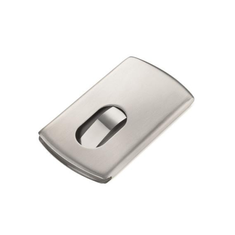 Névjegykártya tartó tárca, fém, 12 db-os, TROIKA Slide Anyaga: rozsdamentes acél Ezüst színű Rugóval tartja a kártyákat, így nem esnek ki és könnyen kicsúsztathatók Gyártó/első EU forgalmazó elérhetősége: TROIKA Germany GmbH Nisterfeld 11, 57629 Müsc