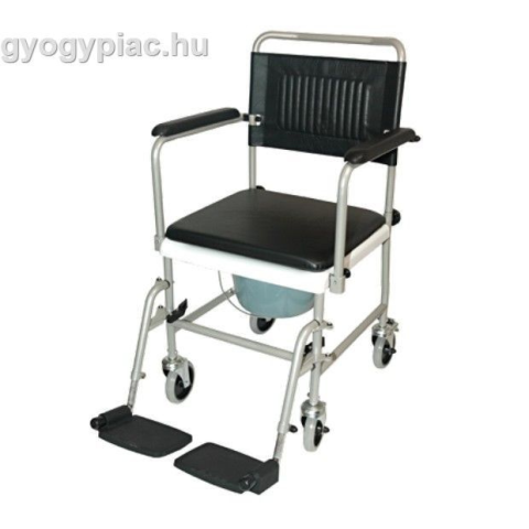 Gördíthető szoba wc állítható lábtámaszokkal, leszedhető kartámaszokkal. A szoba wc leírása: - puha, kipárnázott ülőlap - kihajtható, levehető kartámaszok, melyek biztosítják a beteg könnyű beülését, vagy beültetését oldal irányból is - kivehető háttámla