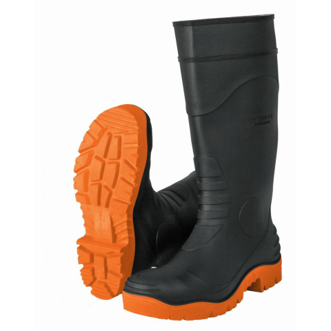 PVC felsőrész és talprész szintetikus béléssel Nagy tartósság (kopásállóság, hajlítás és szakadás) PVC-vel megerősített hegyek 100% poliészter zokni Csúszásmentes talp, melynek kialakítása megakadályozza a hulladék felhalmozódását Méret: 42,5 Magasság: 4