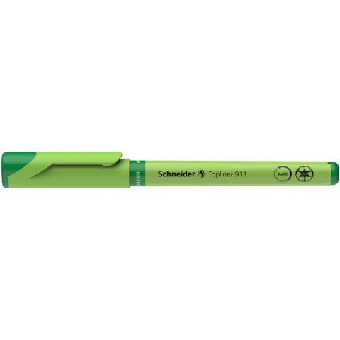 Tűfilc, 0,4 mm, cserélhető betétes, újrahasznosított tolltest, SCHNEIDER "Topliner 911", zöld filctoll, marker termékleírás