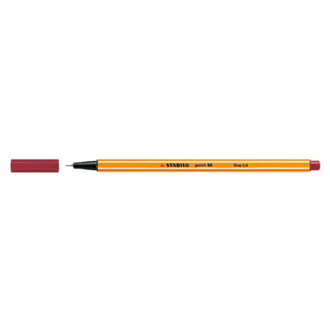 Tűfilc, 0,4 mm, STABILO Point 88, karmazsin bordó - vékony és pontos írás - rozsdamentes fém hegy a hosszú élettartamért - hatszög alakú, világszerte ismert csíkos dizájn - műszaki rajzhoz kiválóan alkalmas - hosszú ideig nem szárad ki kupak nélkül - s