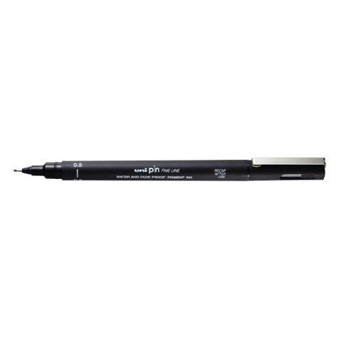 Tűfilc UNI Pin 0,5 mm fekete Az uni-ball PIN, egy fakulásálló és vízálló pigmenttinta rajzmarker, gyakran az első választás a művészek és a tervezők számára. A 0,5 mm-es tollhegy robusztus és erős, így tökéletes a körvonalakhoz és a tiszta grafikai váz
