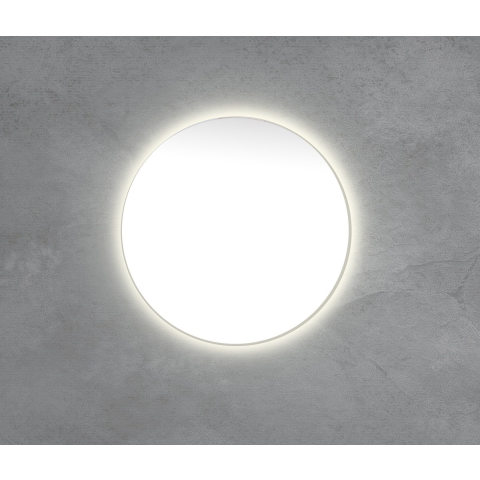 Kerek tükör LED-es világítással, kapcsoló nélkül, 80 cm átmérőjű. A világítás színhőmérséklete 6000 K (hidegebb fehér). IP44 védelemmel rendelkezik, így védett a fröccsenő víz ellen.