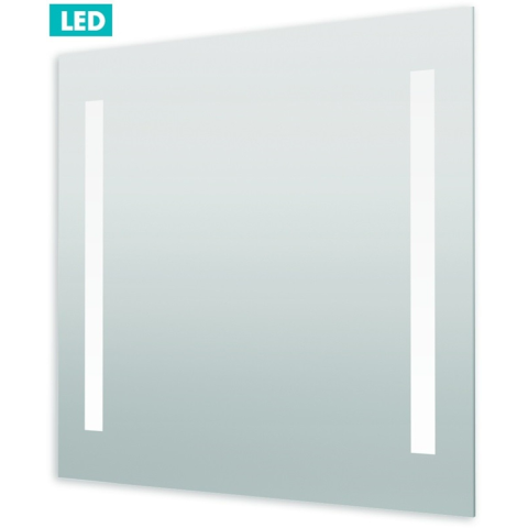 Négyszögletű tükör LED világítással, fűtött fóliával és 80x70 cm-es érzékelővel. A világítás színhőmérséklete 6000 K (hűvösebb fehér). IP44-es védettséggel, fröccsenő víz ellen védett.
