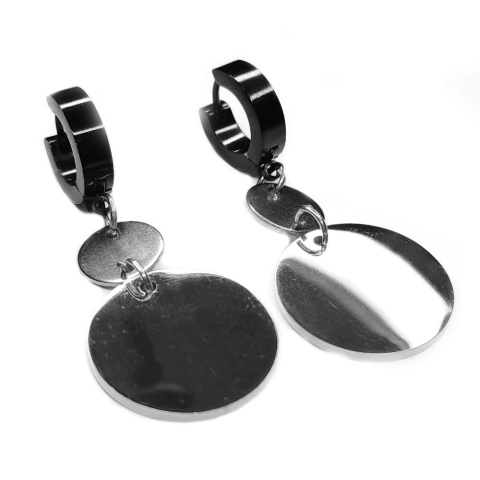 1 kép Tüköracél karika lapok fülbevaló, ezüst-fekete színű