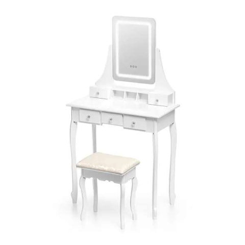 Tukros sminkasztal, szekkel es LED vilagitassal - 5 fiokos - Feher bútor termékleírás
