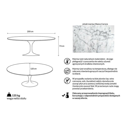 1 kép TULIP ELLIPSE MARBLE CARRARA fehér asztal - ovális márványlap, fém