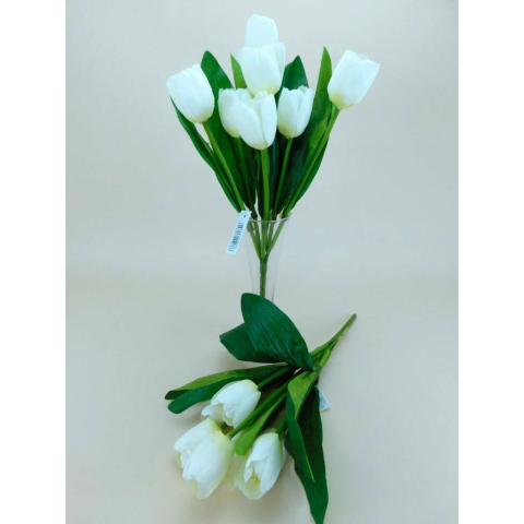 Tulipán 7 ágú selyemvirág csokor 36 cm - Fehér