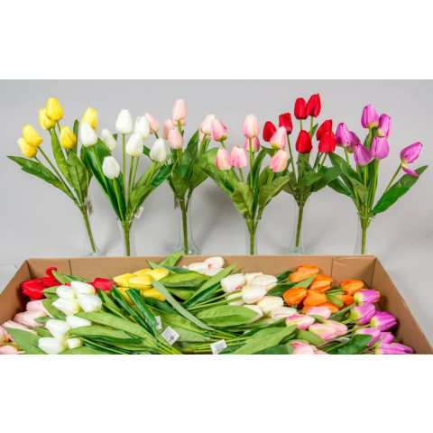 Tulipán 7 fejes szatén selyemvirág csokor 44 cm dekoráció árgrafikon