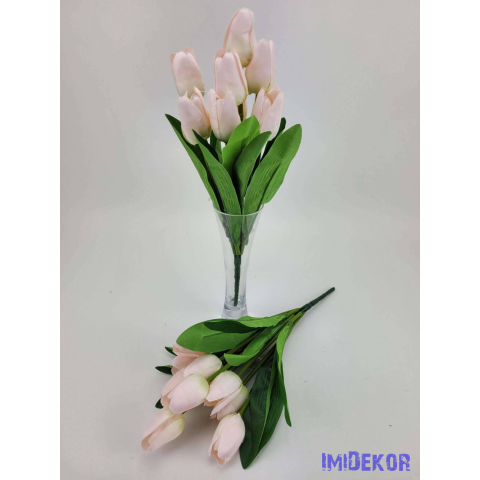 Tulipán 9 fejes selyem csokor 35 cm - Halvány rózsaszín dekoráció 1 kép