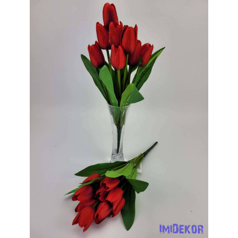 Tulipán 9 fejes selyem csokor 35 cm - Piros dekoráció 1 kép