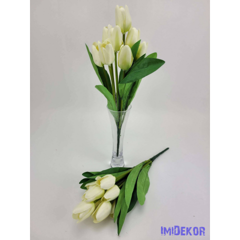 Tulipán 9 fejes selyem csokor 35 cm - Zöldes krém