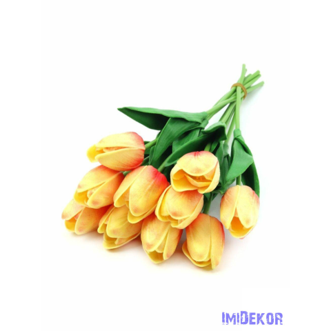 1 kép Tulipán gumis 10 szálas real touch köteg 33cm - Cirmos Narancs