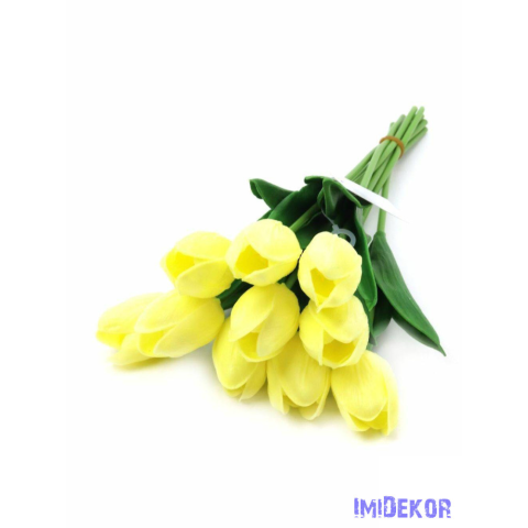 1 kép Tulipán gumis 10 szálas real touch köteg 33cm - Krém-Sárga